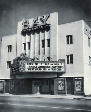 The Bay Theatre was originally constructed and opened in 1945 as the Beach Theater. In 1946 the Theatre was purchased by Fox West Theatres and redesigned under the direction of Fox president Charles Skouras. At this point the iconic neon marquee was added. They redecorated the interior in the motif used throughout the Fox theater chain. The Theatre was also given its current name.